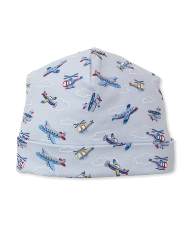 Playfully patterned with our air adventures print, our cozy hat will keep baby's head warm and covered. Made from 100% Pima cotton for the softest, snuggliest fit.