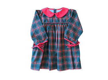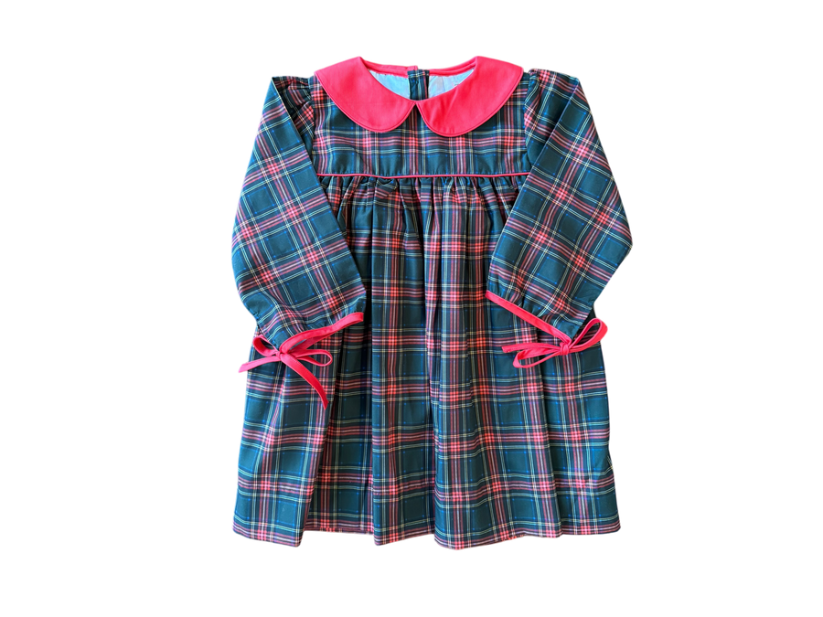 Classic and cozy, this plaid dress is perfect for holiday gatherings. Featuring a timeless red and green tartan pattern, it’s designed with a contrasting red Peter Pan collar, long sleeves with bow-tie details. A festive yet traditional piece, ideal for Christmas celebrations and photos.