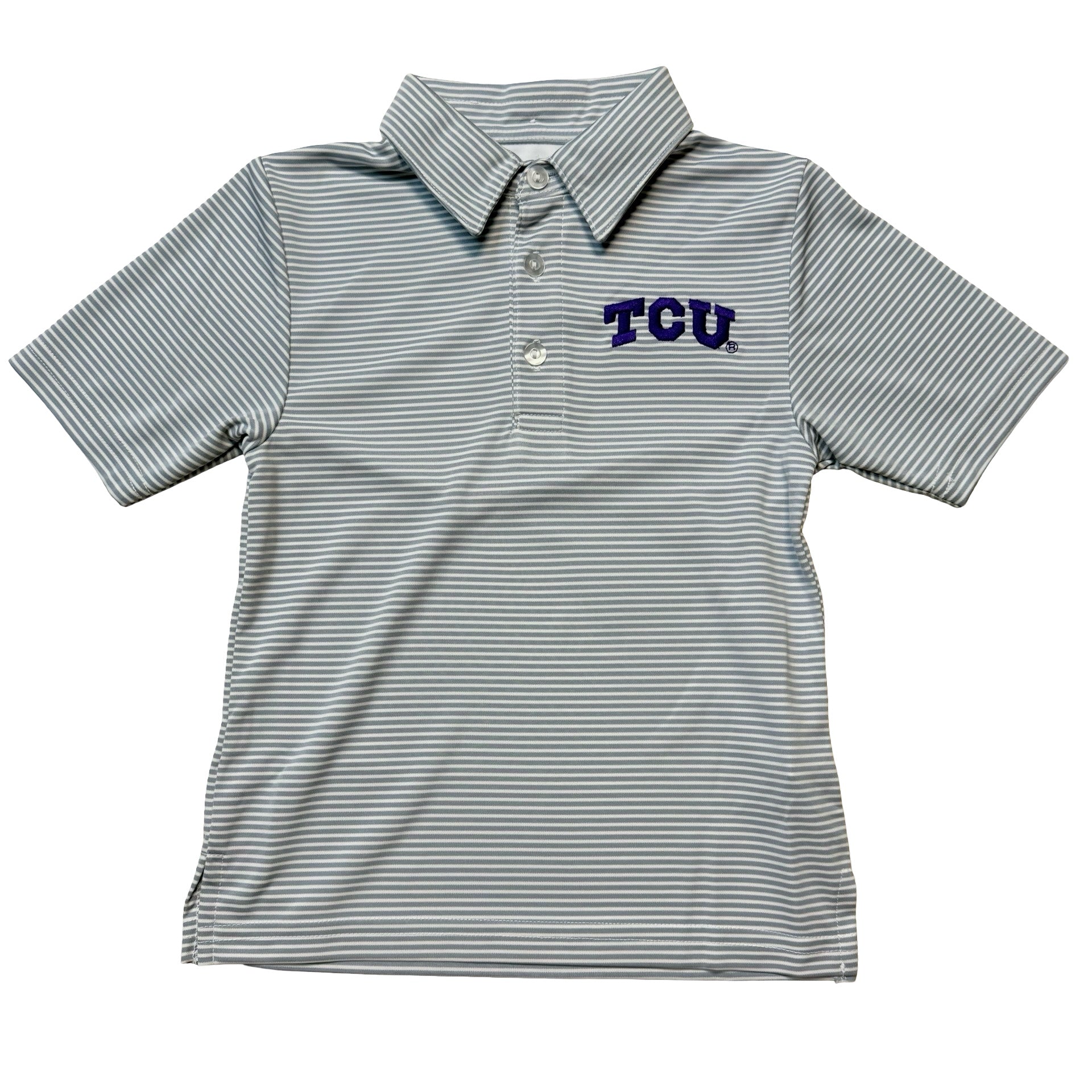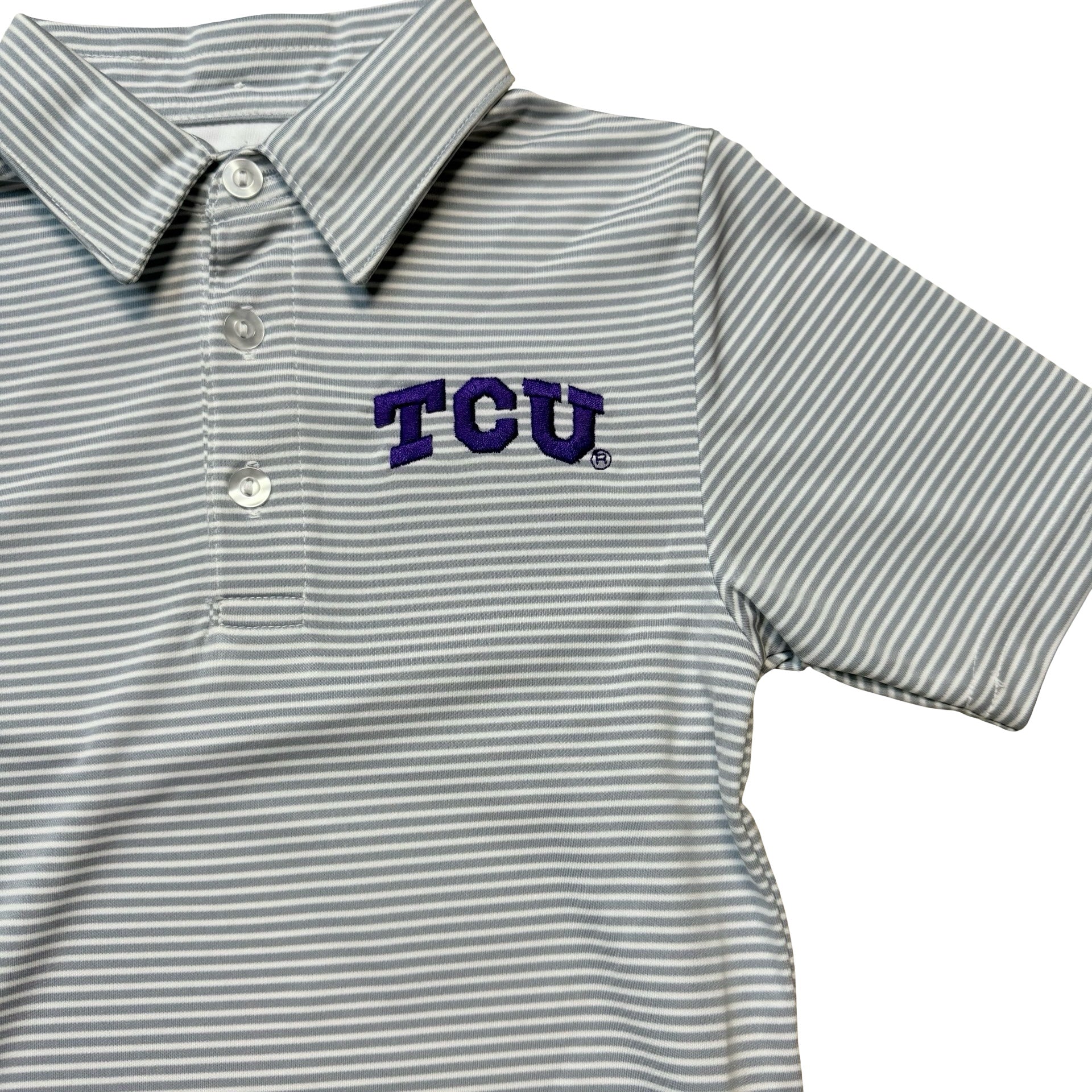 TCU Embroidered Stripe Polo Gray
