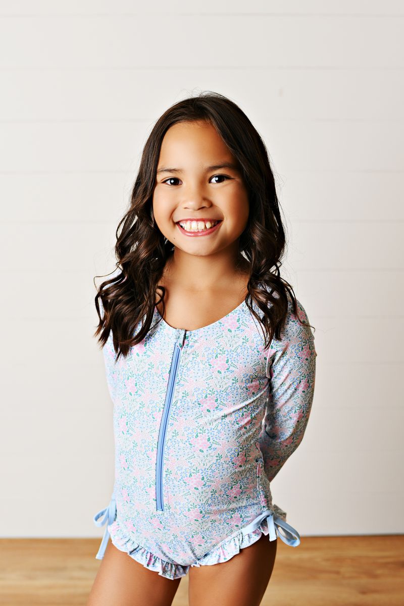 Keep your little one protected and stylish with this charming rashguard swimsuit featuring a delicate spring ditsy print. Designed with UV protection to shield sensitive skin from harmful sun rays, this versatile piece is perfect for beach days, pool parties, and water adventures. The durable, quick-drying fabric ensures comfort whether your child is splashing in the water or playing on the sand. Easy to care for and built to last through countless summer memories, this rashguard combines practical sun safety with adorable design that kids actually want to wear.