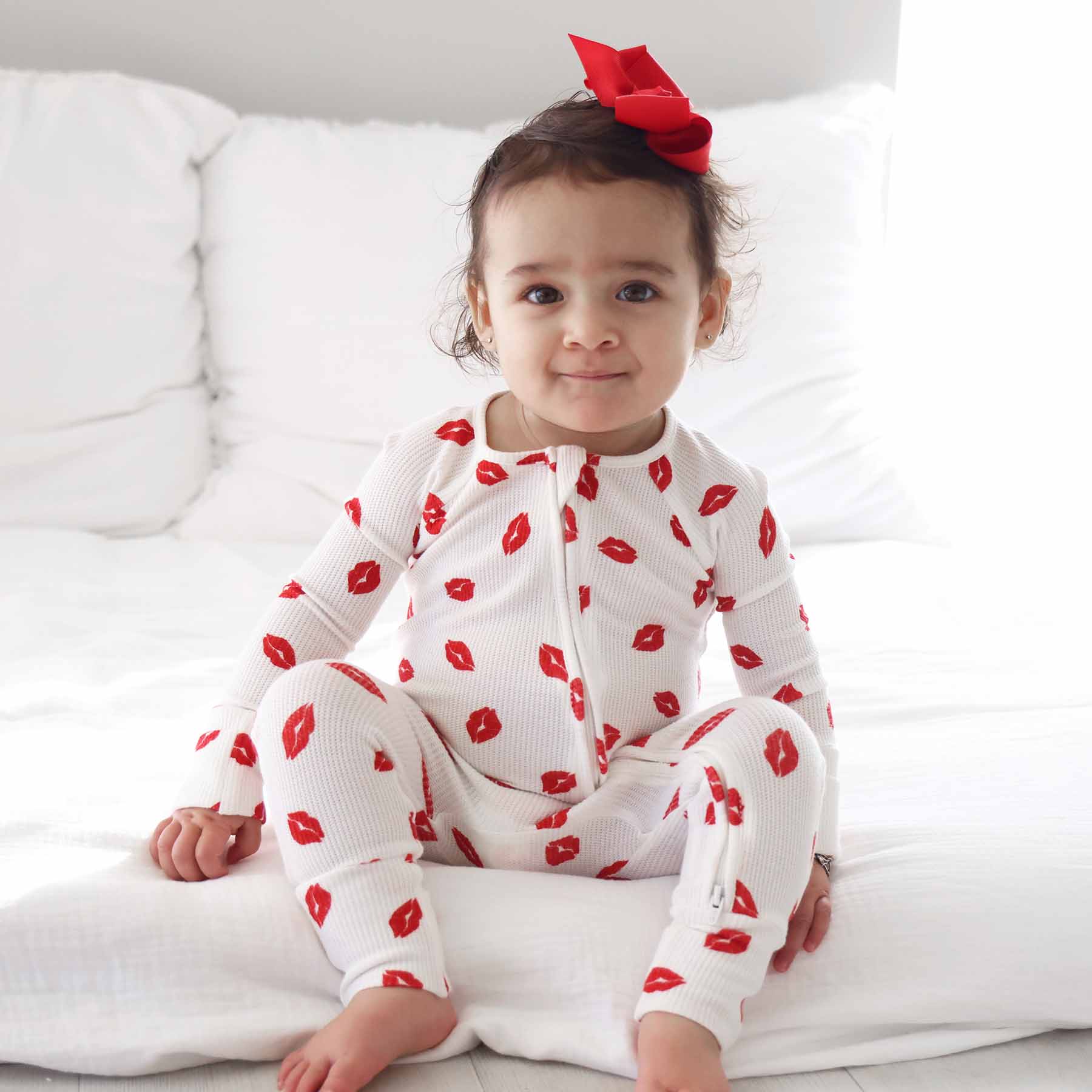 Fall in love with bedtime all over again with our Valentine’s Day convertible zip rompers! Designed in three adorable, love-filled prints, these cozy one-pieces are perfect for celebrating the sweetest season with your little Valentine. Made from ultra-soft, stretchy bamboo fabric, each romper is gentle on sensitive skin and comfy enough for all-night snuggles. The convertible foot cuffs let you switch between footed and footless wear, making these pajamas perfect for growing babies and changing temperatures. A smooth, easy zip makes diaper changes quick and stress-free, especially during nighttime routines. Whether you’re planning Valentine’s Day photos, cozy family nights, or gifting something extra special, these rompers are made for love, comfort, and plenty of cuddles.
