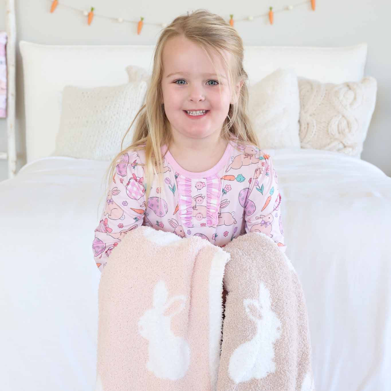 Grab this blanket for the softest little layer for springtime snoozes, stroller rides, and all the cozy moments in between. Available in two dreamy colors, a perfectly pink option and a calm neutral, each one is covered in the cutest bunnies for a look that feels like Easter morning all season long. Made from our signature CuddleLane™ fabric, this blanket is buttery-soft, lightweight, and just right for year-round cuddling. Whether you’re layering it in the crib, packing it in the diaper bag, or wrapping your little one up after bath time, Bunny Foo Foo is the kind of blanket you’ll reach for again and again this spring.