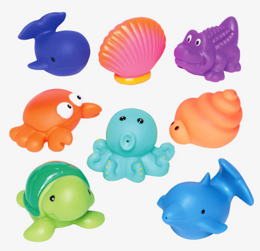 Get ready for lots of fun in the tub. Now, the party doesn't have to end when it's bath time for your little one! They're perfect for beach and pool time as well because our Lazy Tubbies float and squirt water! Every baby beachgoer will love the Sea Party Squirties pack complete with a crab, sea turtle, dolphin, seashell and more.