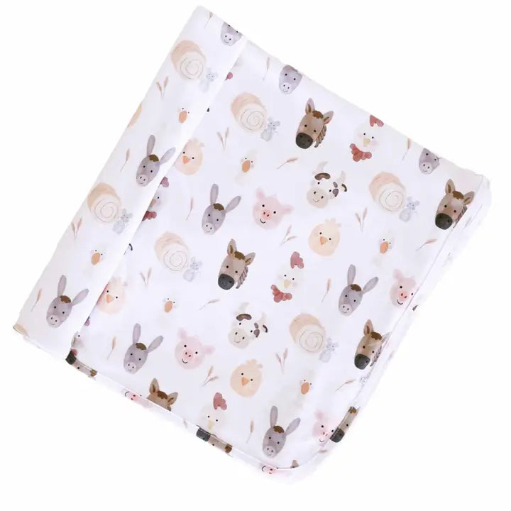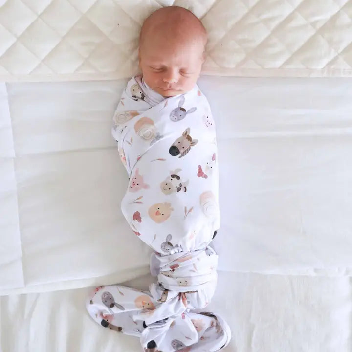 Bring comfort and warmth to your little one with this oversized swaddle blanket! Made from buttery soft fabric, this swaddle features the cutest farm animal print with playful pigs and cheerful chickens that will soothe even the fussiest of babies while they're having a cow. The lightweight, breathable fabric will keep your baby snug without overheating, helping them drift off to sleep surrounded by their new furry friends. Whether they're hitting the hay in their crib or enjoying some must-needed snuggles, your baby will be happy as a pig in mud wrapped in their new favorite swaddle!
