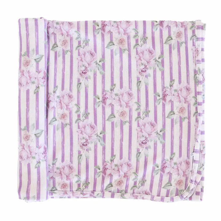 Wrap your little one in floral beauty with our Lila’s Lilacs Oversized Swaddle Blanket! Decorated with soft roses on vintage lilac stripes, this design brings timeless charm to every cuddle. Made from breathable bamboo waffle fabric, the oversized style offers plenty of room for the perfect swaddle while staying soft and gentle against delicate skin. Lightweight, stretchy, and oh-so pretty, this blanket blends everyday function with style.