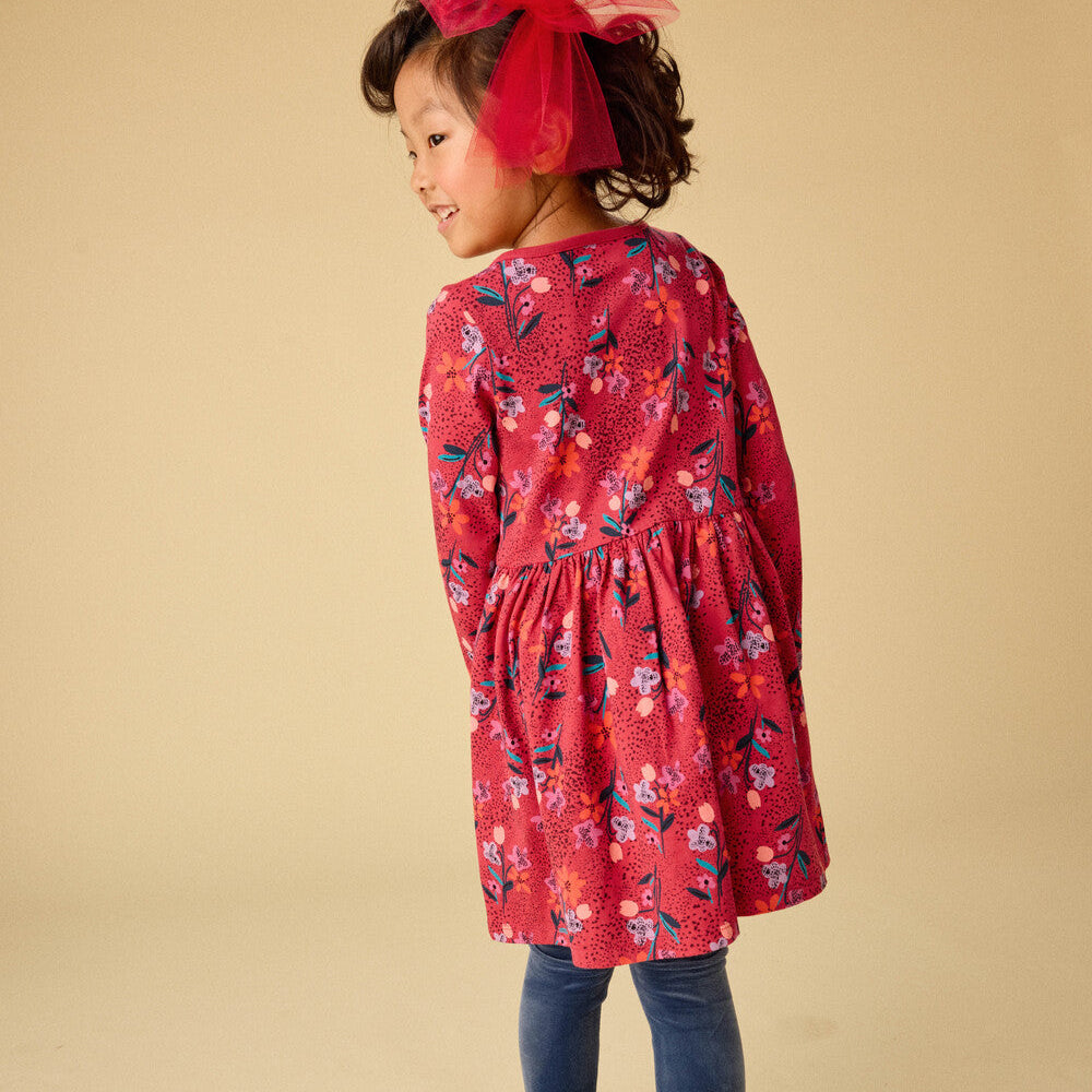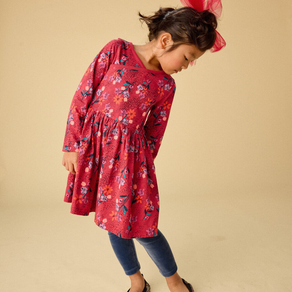 This soft and stylish Long Sleeve Wrap Neck Dress features a thoughtfully designed silhouette, combining a classic wrap neckline with a playful gathered skirt.