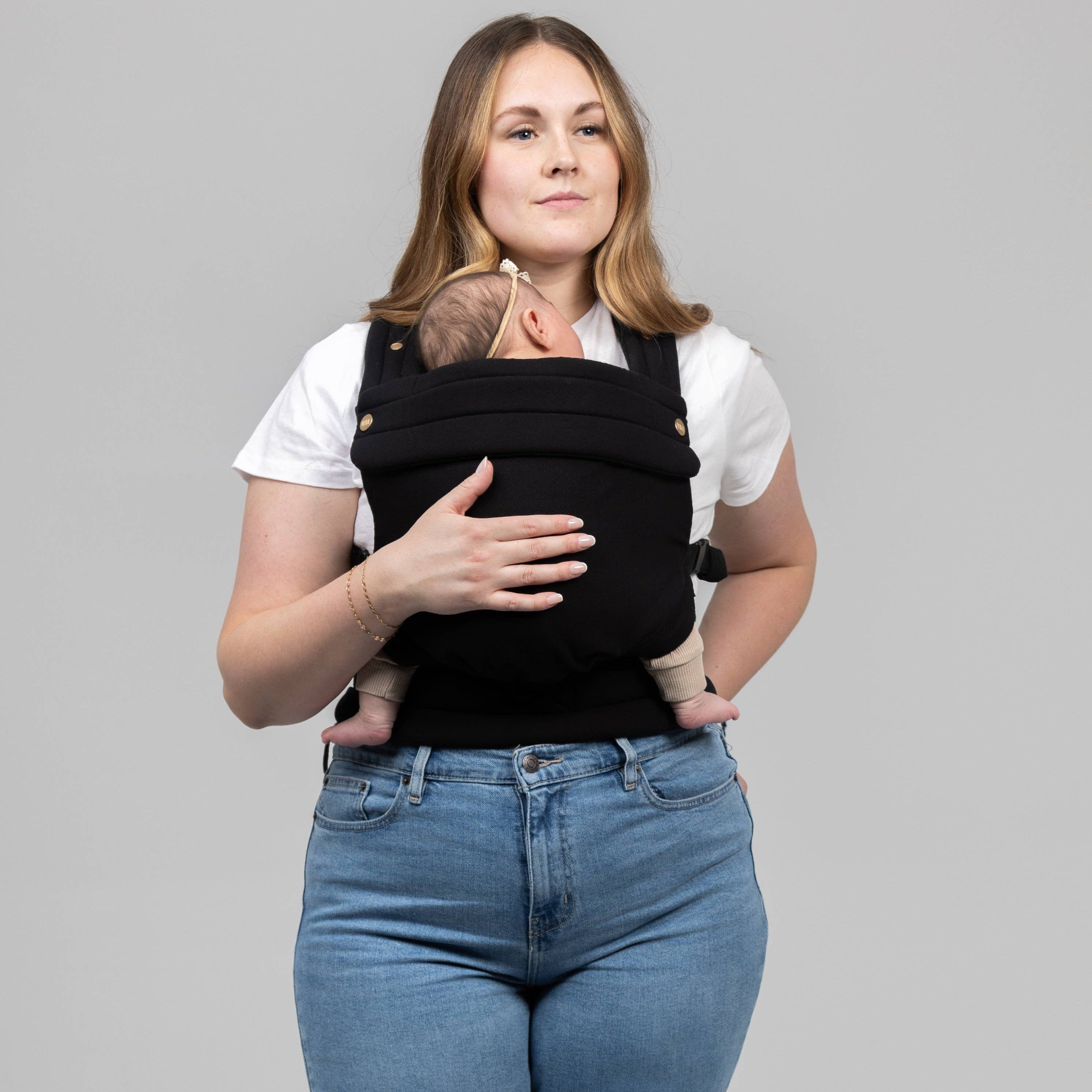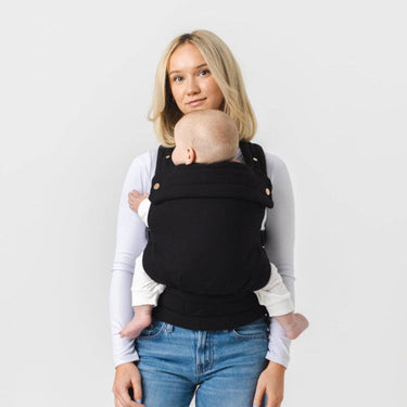 Our best selling carrier, now available in a gorgeous, textured, deep black. Sleek and versatile, this carrier has the same quality build and features as our houndstooth, and is perfect for anyone looking for a simple, sleek, and timeless look that goes with everything. The chic, functional design will allow you the freedom to continue doing all that you love with your baby close. With three safe carry positions, full adjustability, breathable fabric, and beautiful design, nothing can stop you now.