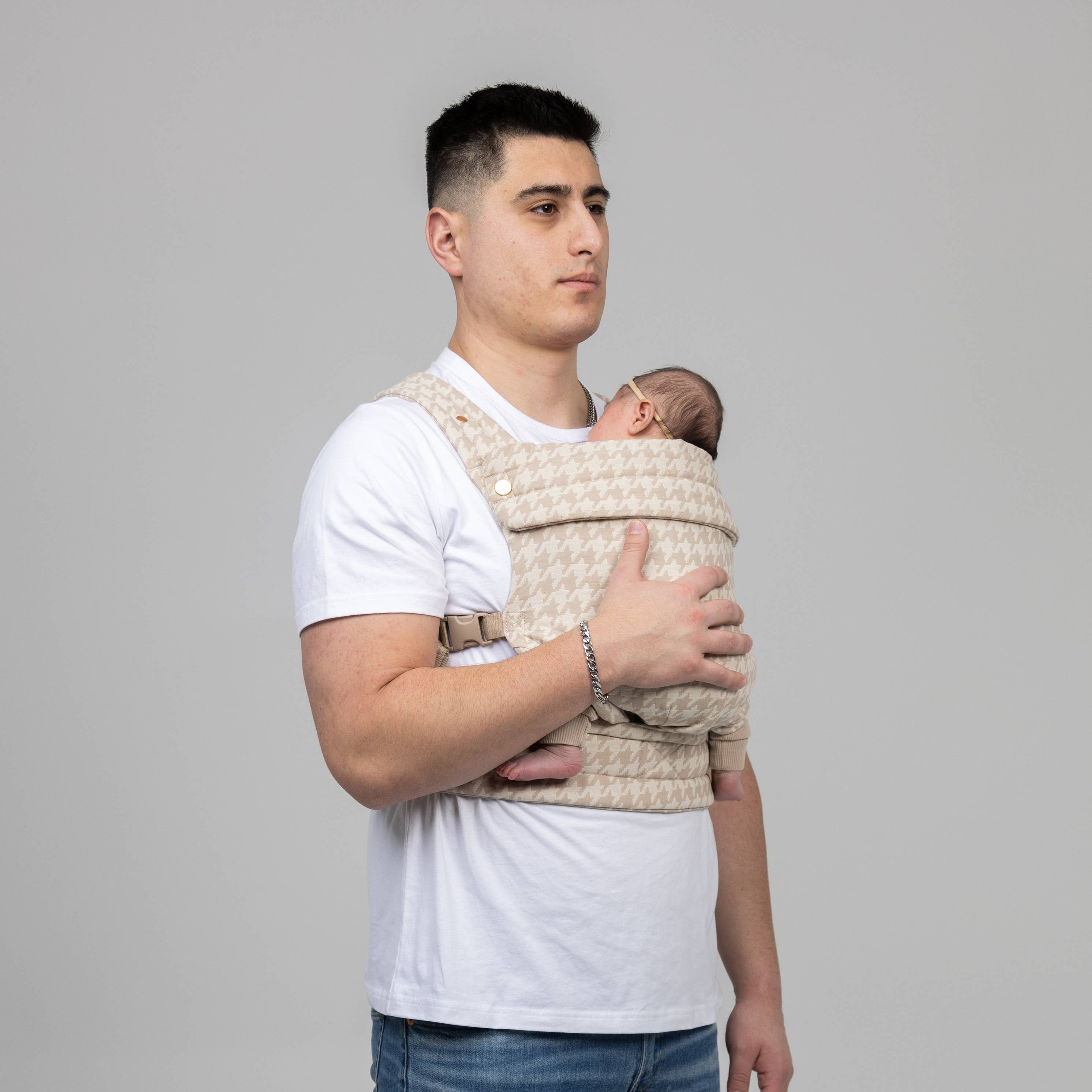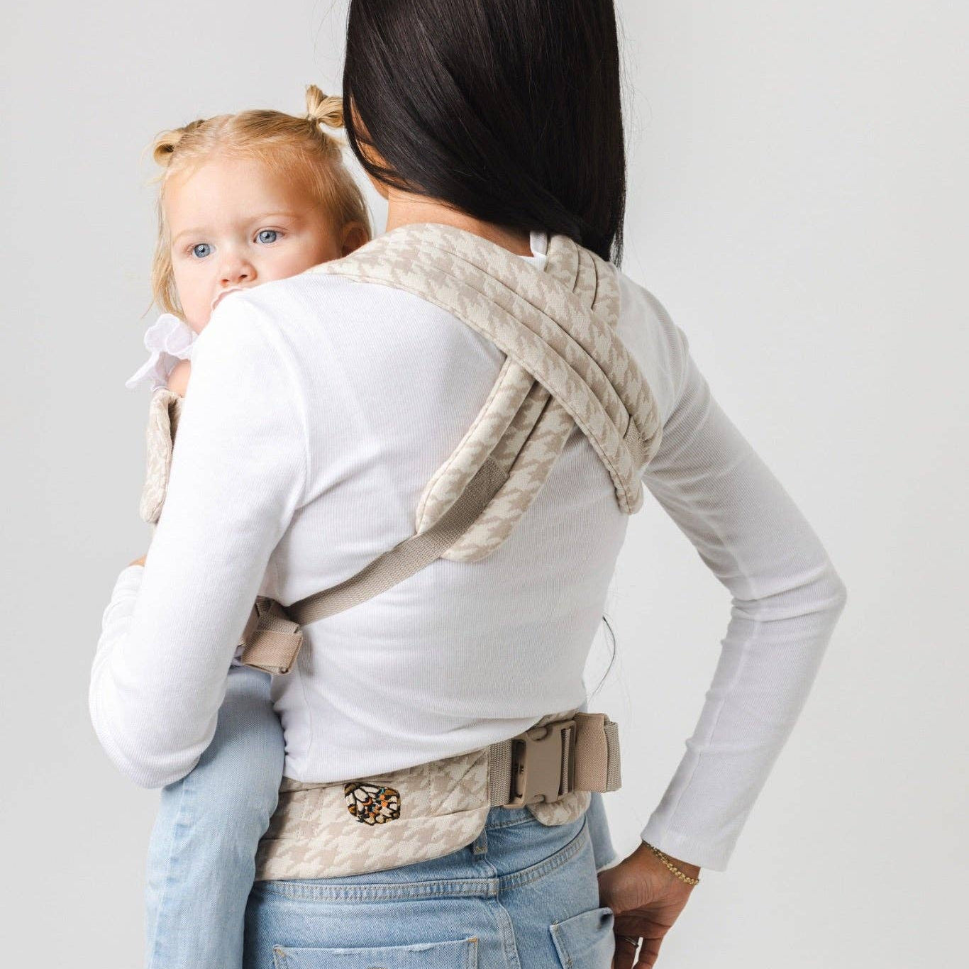 Experience the magic of Mabē with our premier design: the Monarch Carrier in houndstooth. The chic, functional design in a neutral beige/cream color combo will allow you the freedom to continue doing all that you love with your baby close. With three safe carry positions, full adjustability, breathable fabric, and beautiful design, nothing can stop you now.
