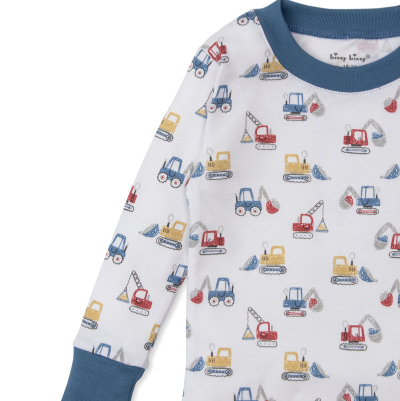 Drift into dreamland in our playfully patterned, two piece pajama set. Featuring our fun construction diggers print for a cozy fit. Made from super-soft Pima cotton, your precious baby is sure to get a good night's sleep!