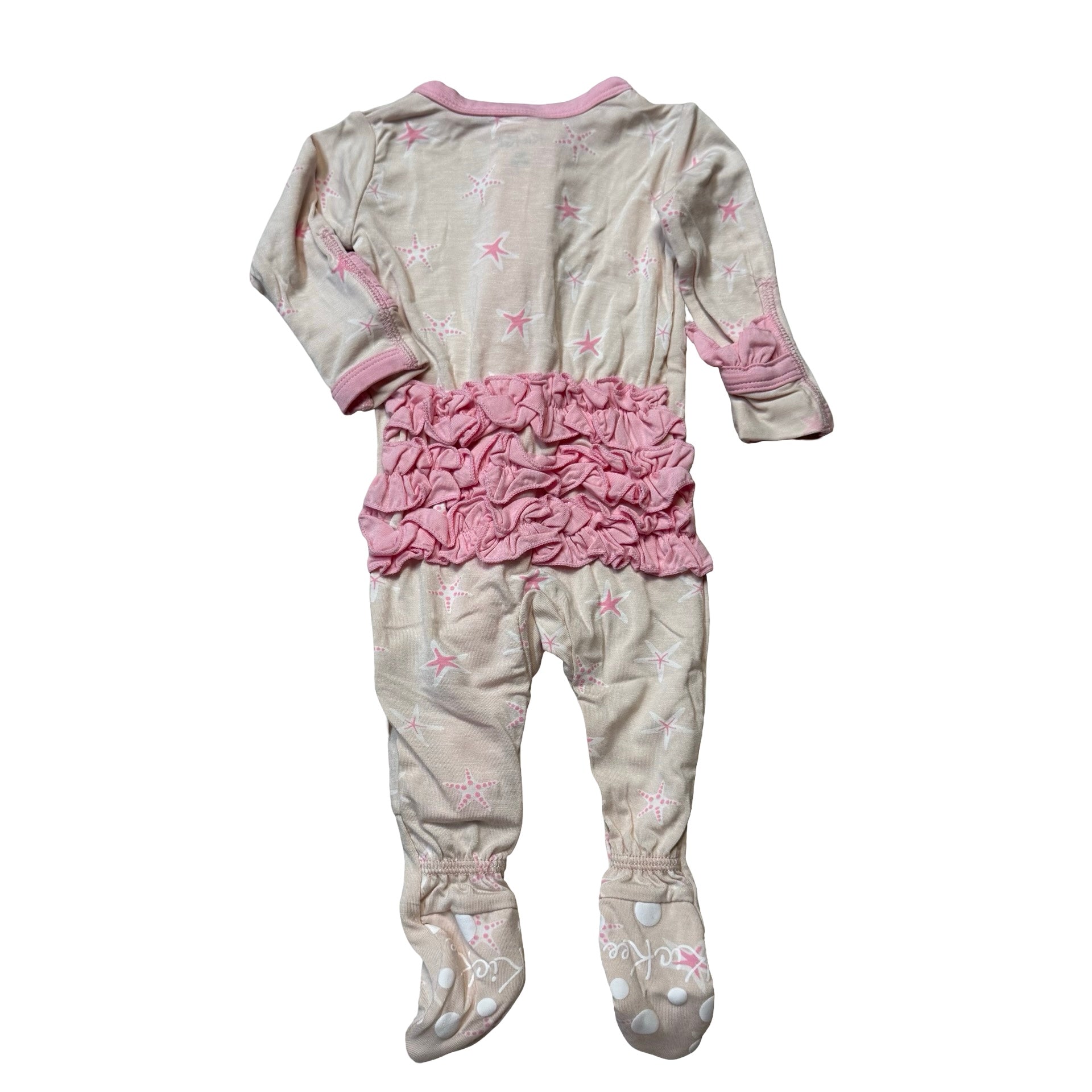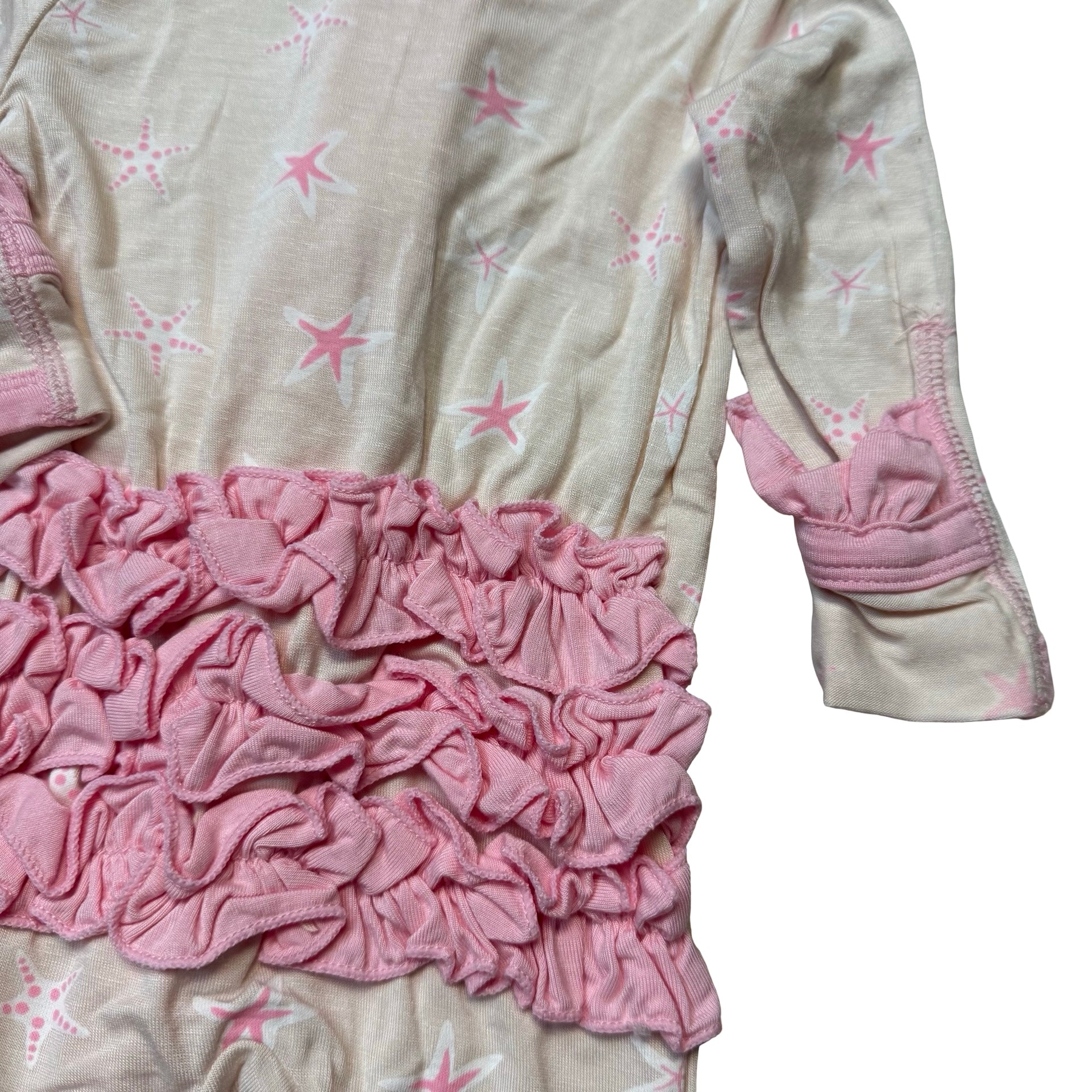 Good news! Our beloved Ruffle Footie now comes with a 2 way zipper! All the same comfy, ruffly goodness, with the ease of a zipper for quick changes. Our sweet fitted Footies feature flip 'paws' to cover chilly hands and prevent scratching. The inside of the foot is lined with super soft fleece and the bottom has no-slip grips! You will love to cuddle with your baby in our super soft Viscose from Bamboo fabric, and baby will stay warm and dry!