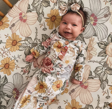 These knotted gowns are crazy popular because it's so easy to change baby and keeps them nice and warm by simply knotting the bottom so their tiny legs are covered. These gowns are also gorgeous in newborn pictures. So simple and so comfy, and comes with the matching knotted hat. The perfect gift for a new mom!