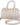 Our stylish cream barrel bag has a black interior, the pearl embellishments add a lovely touch of elegance!