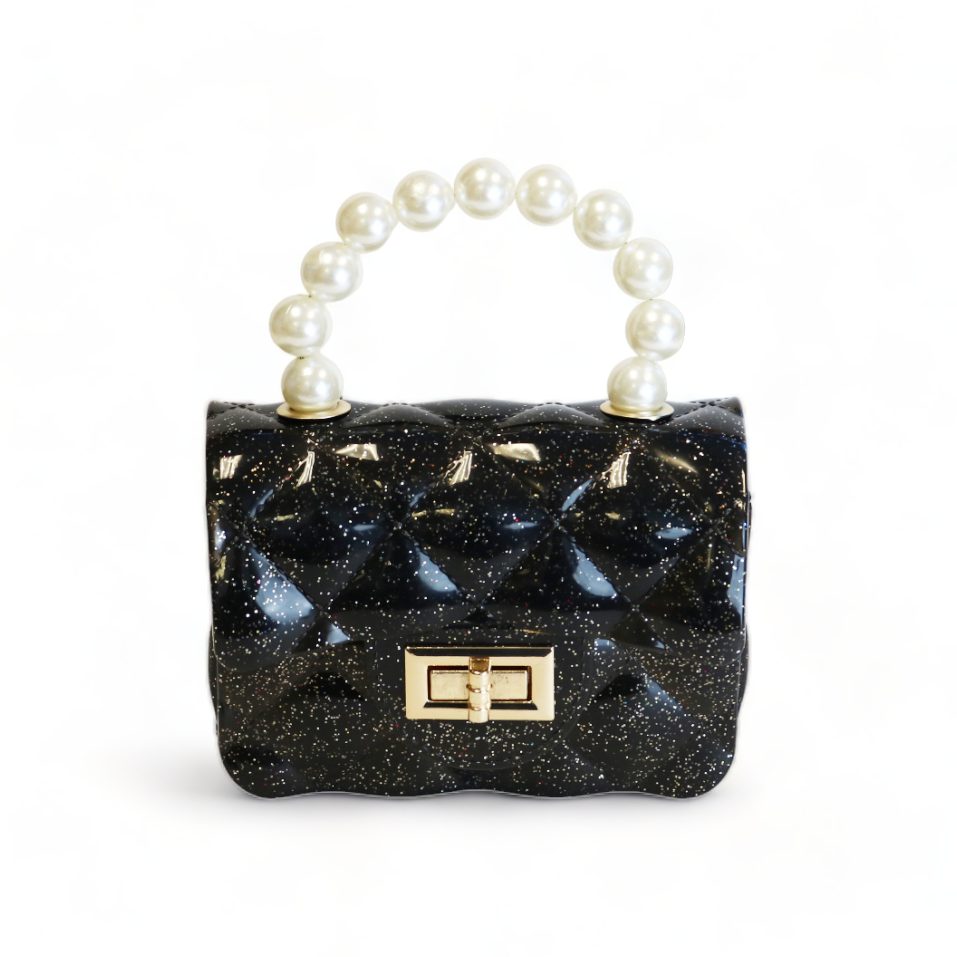 Make a statement with this charming Quilted Mini Jelly Purse in Black! Featuring a quilted design paired with an elegant pearl handle, this compact bag brings sophistication and playfulness together perfectly. A delightfully chic accessory that proves mini bags can have major personality! Come with detachable gold chain.