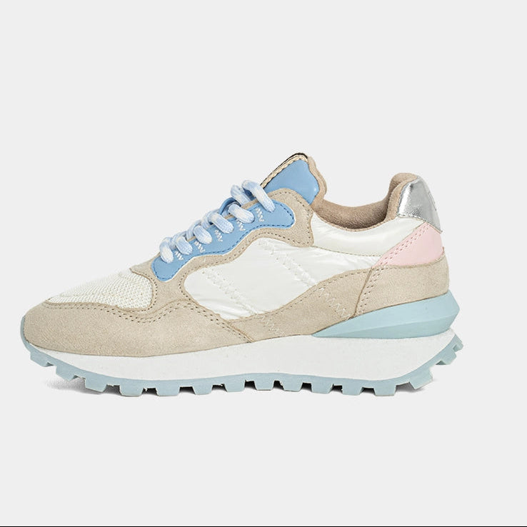 Let your little one shine bright from the playground to weekend outings. PHOEBE MINI brings bold energy to tiny steps, combining retro-cool vibes with a playful twist. With its chunky sole, shimmering textures, and layered pastel tones, this standout sneaker delivers big style for little fashionistas. Designed for fun, comfort, and all-day movement this pair is a mini-size statement.
