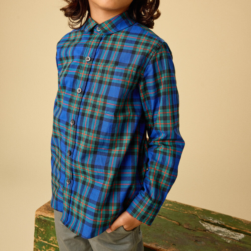 Inspired by the festive streets of Busan, this holiday plaid brings a pop of cheer to a timeless button-up. Made from lightweight yet durable 100% cotton poplin, it's designed with a standard fit, chest pocket, and spare button for everyday practicality. Perfect for dressing up or down--wear it solo or layered over a graphic tee.