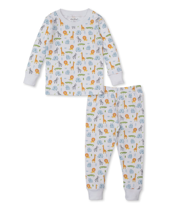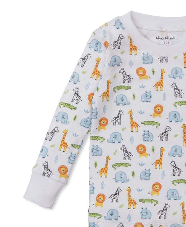 Drift into dreamland in our playfully patterned two piece pajama set. Featuring an allover safari print and made from super-soft Pima cotton, your precious toddler is sure to get a good night's sleep!