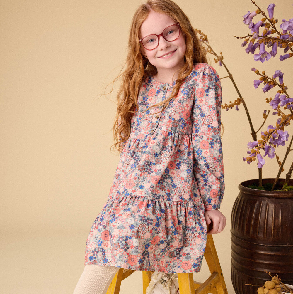 A timeless piece with modern charm, this corduroy shirtdress is designed to be cherished and passed down. The soft floral print, blouson sleeves, and tiered skirt bring a touch of elegance, while practical details like side seam pockets and a functional placket keep it easy for everyday wear.