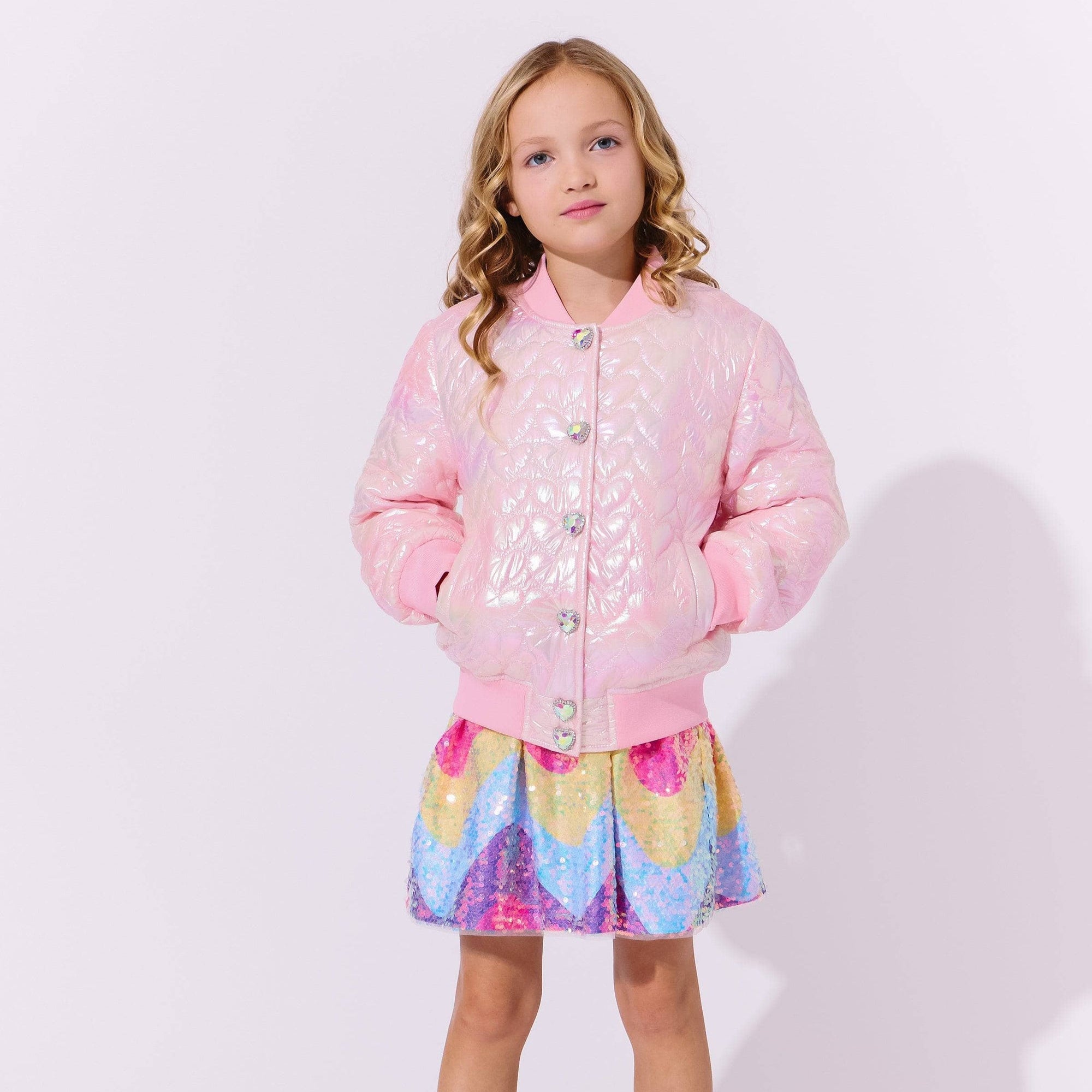 - Gorgeous quilted jacket with an iridescent hologram finish and heart-shaped stitching for a unique and stylish look.