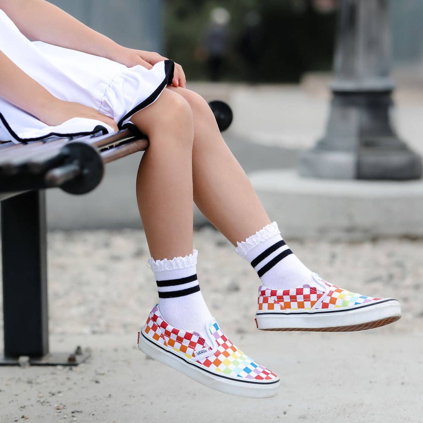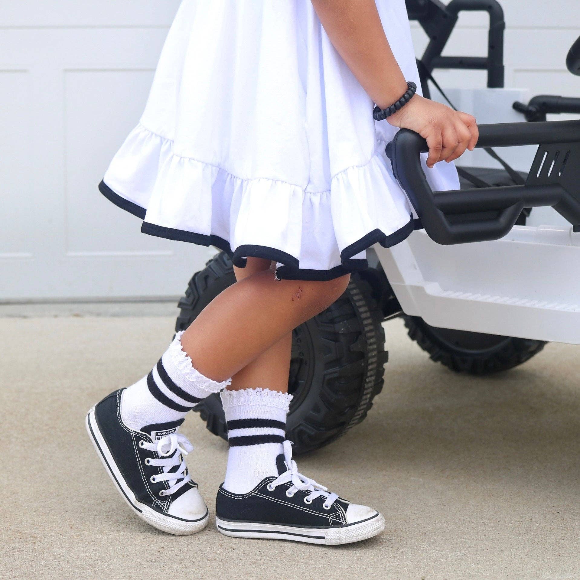 Lace Midi Sock | White/Black Striped