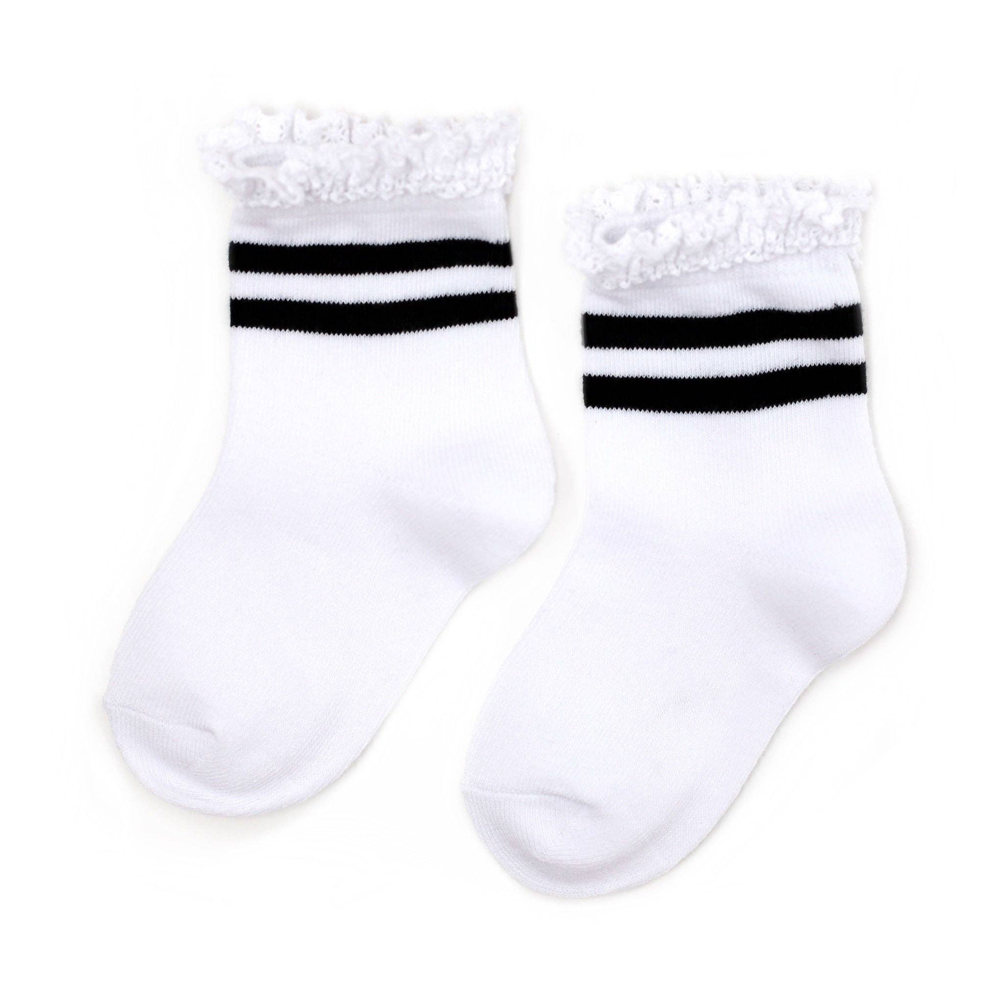 White and Black Striped Lace Midi Socks
