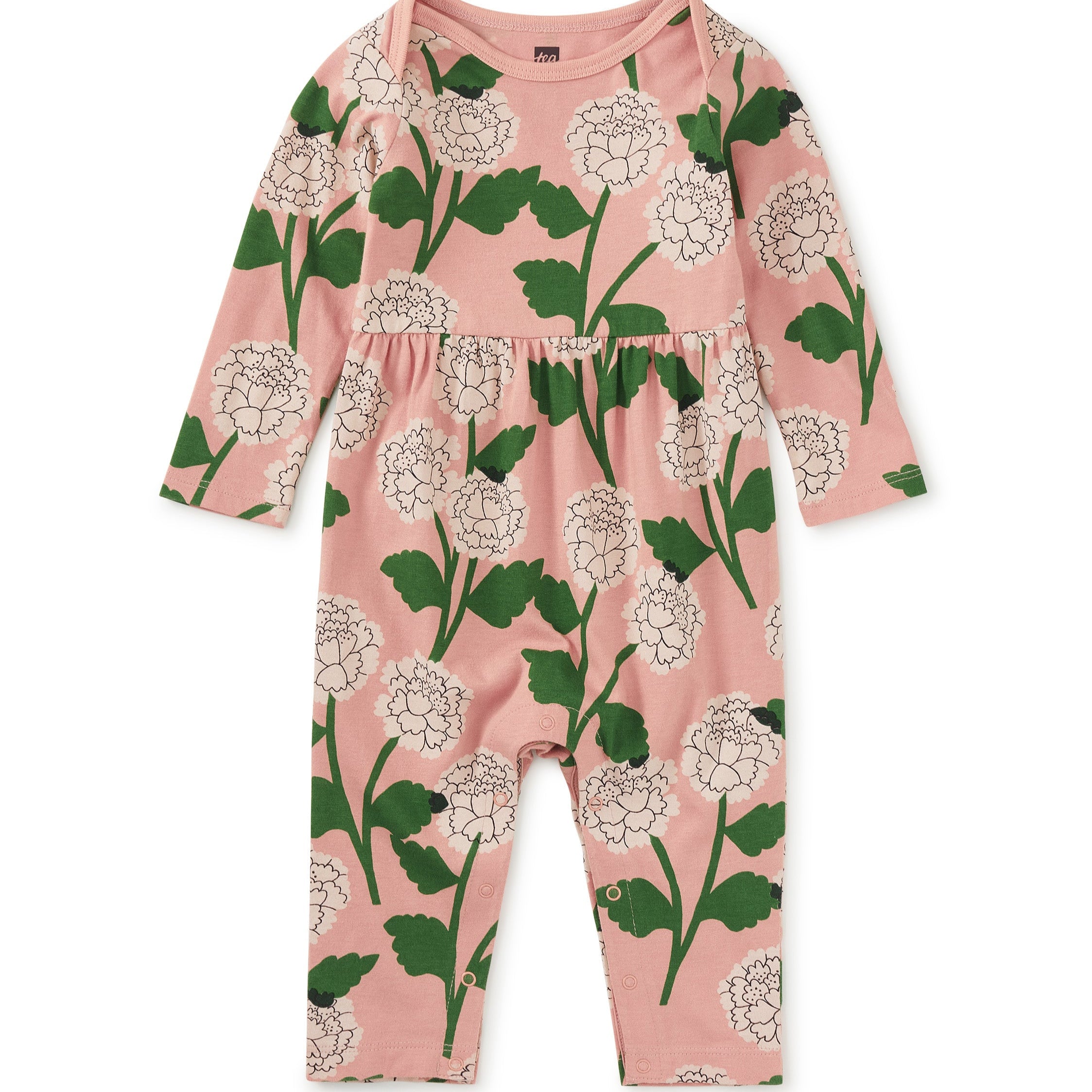 A garden of charm blooms on this comfy baby romper! Designed in Tea's signature prints, this one-piece offers a blend of playful style and practical comfort. With its lap shoulder design and gentle smocking at the waist, it's made for baby's first adventures--whether exploring the play mat or snuggling up for stories. The soft 100% cotton jersey feels great on delicate skin, and full-length legs with inseam snaps ensure quick and easy changes for parents on the go