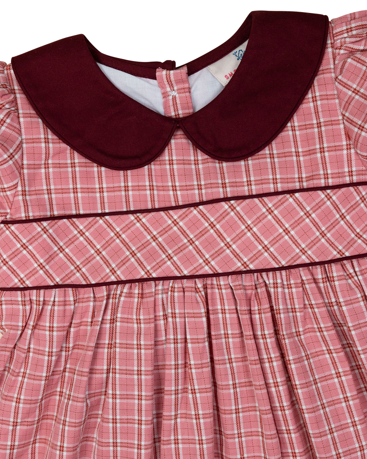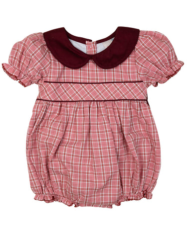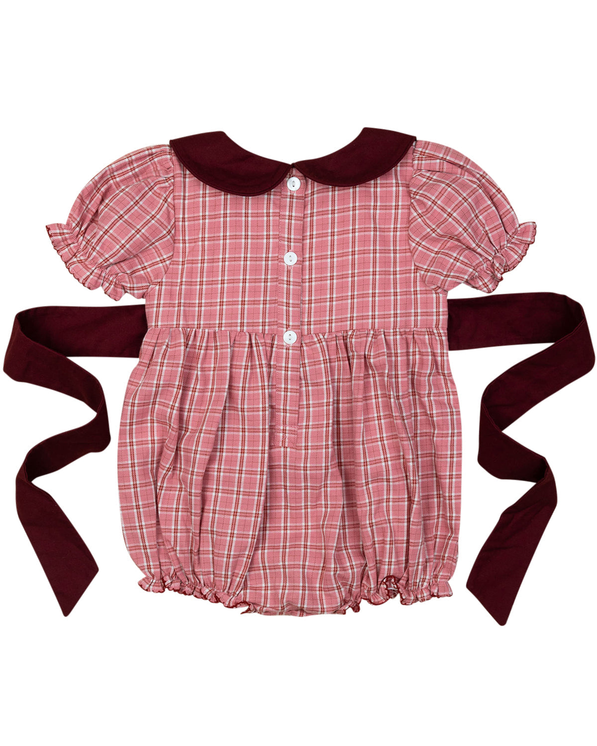 Classic charm meets timeless elegance in our Pink and Maroon Tartan Bubble. Featuring a dark pink tartan print, puffed sleeves, and a rich maroon peter pan collar, this one-piece is perfect for your little darling’s special occasions. The ribbon tie adds a regal touch and perfect fit. A must-have for picture-perfect moments!