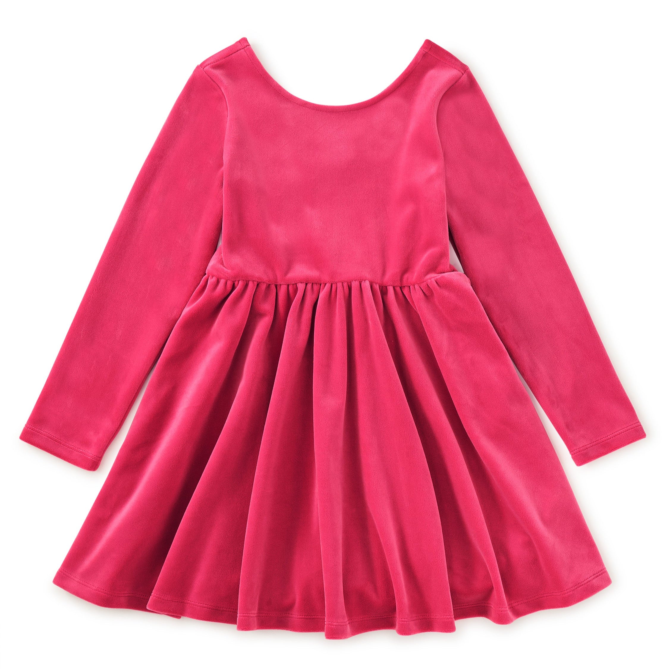 A true touch of luxe! Designed to dazzle, our heirloom-quality velour ballet dress promises warmth, elegance, and endless twirls. With a fitted bodice, classic boat neckline, and circle skirt, this piece will see them through the holidays and beyond. Below mid-thigh length. Crafted of stretchy cotton/spandex. Fitted bodice and circle skirt.