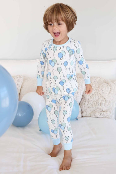 Make bedtime feel like a celebration with our Blue Party Time Two Piece Pajama Set! Filled with playful blue balloons, stars, and streamers, this festive set brings the party spirit to cozy nights and lazy mornings. Made from soft, stretchy bamboo fabric, the snug-fit keeps kids comfy through story time, sleep, and early play. Easy to wear and full of colorful charm, these pajamas are perfect for birthday sleepovers, milestone photos, or simply adding a little fun to bedtime. Bright, comfy, and made for memories, this pajama set is one kids will love wearing again and again!