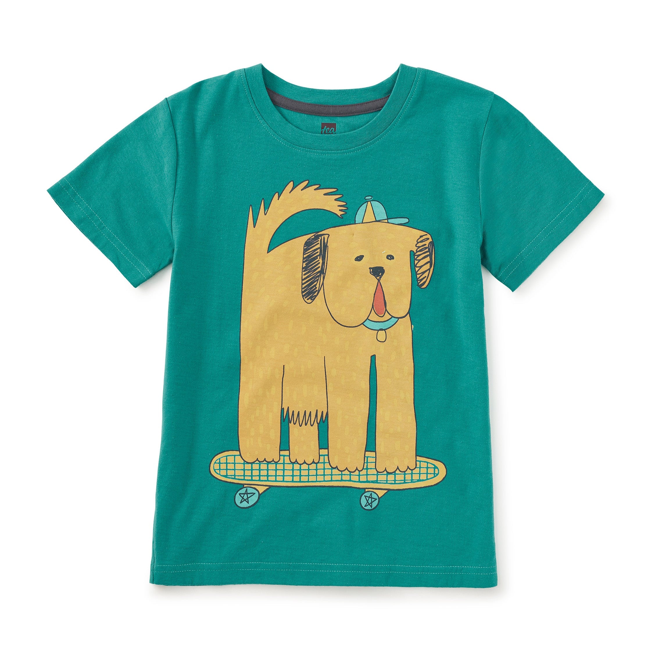 Fun fact: Dogs have an incredible sense of balance--and this skater pup looks like he's got it mastered. Our hand-drawn graphic captures that playful, adventurous spirit kids love. Made from soft cotton jersey with a classic crew neckline and a standard everyday fit, this tee is designed for comfort that lasts. Interior neck tape adds durability, so it's ready for repeat wear and wash after wash. Pair it with our fan-favorite Playwear Shorts or Knit Shorties for easy, active days, or dress it up with woven shorts for a polished-casual look.