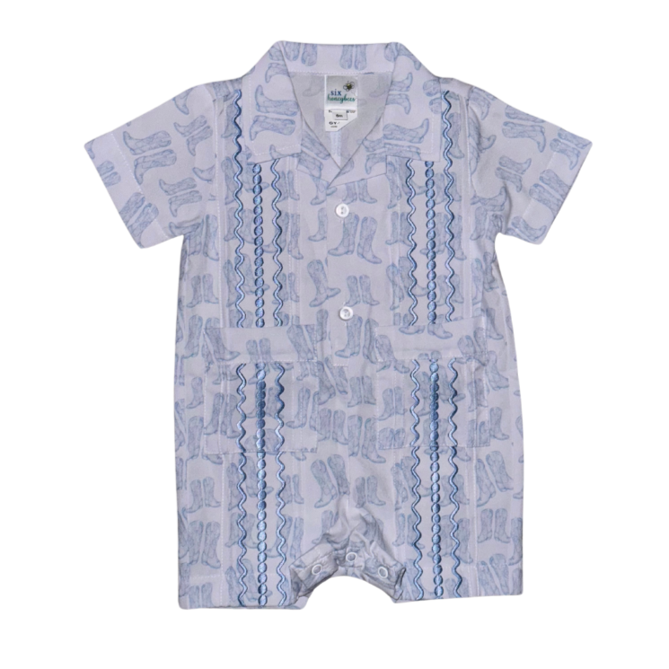Blue Cowboy Boots Boy’s Guayabera Romper