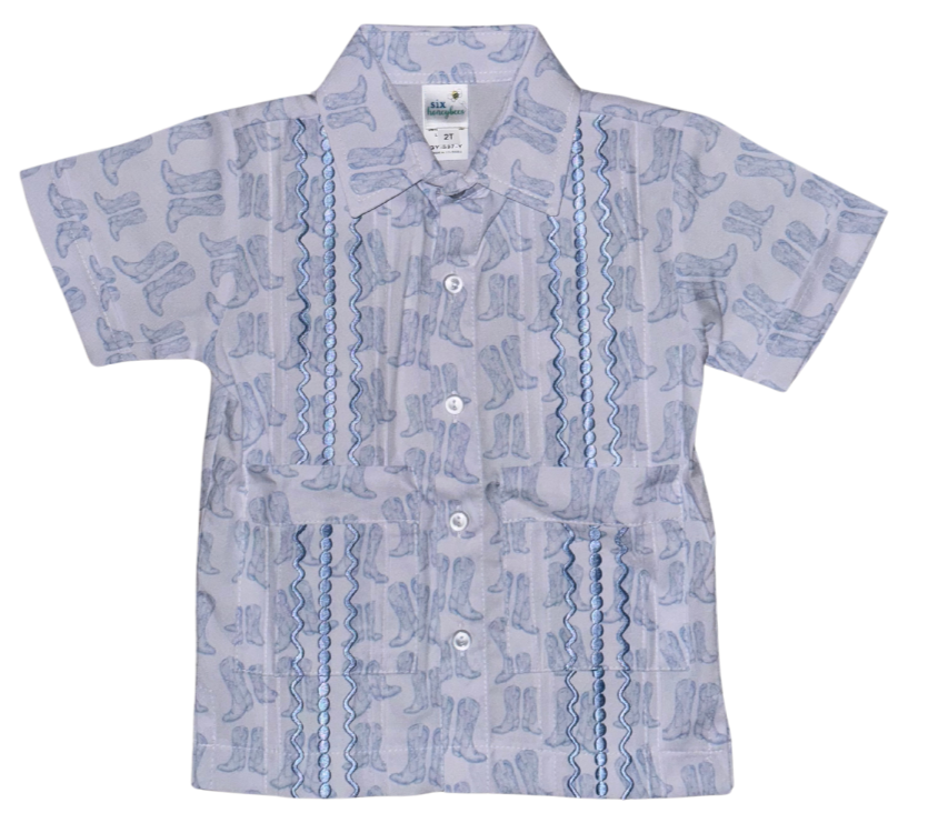 Blue Cowboy Boots Boy's Guayabera Shirt