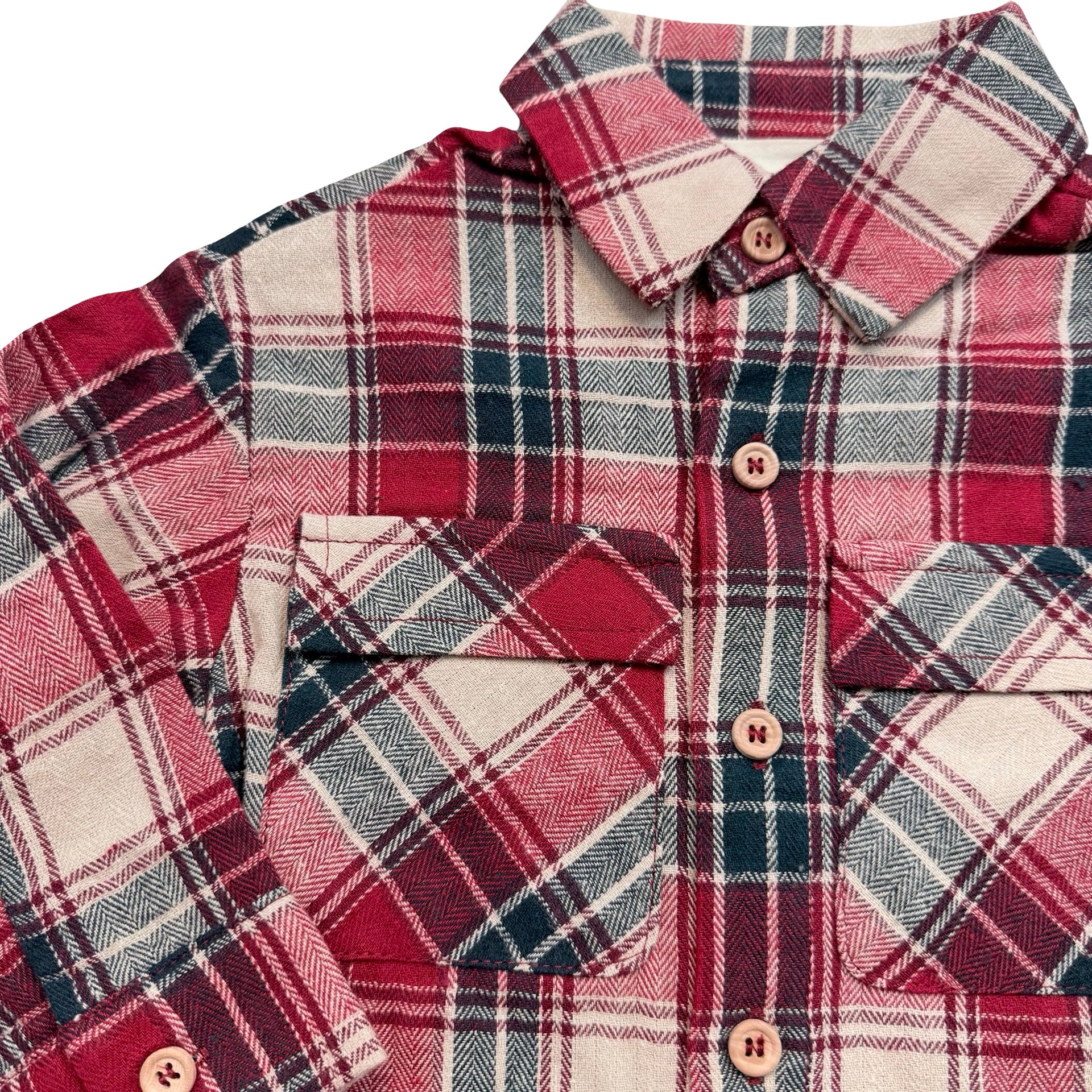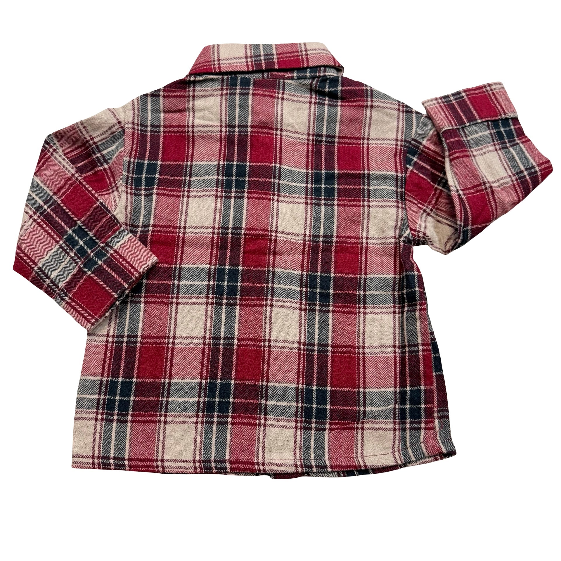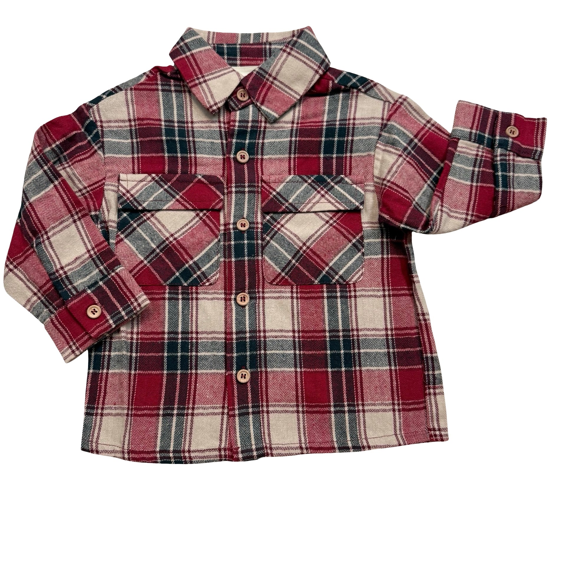 A button down flannel is the best classic piece to have in your little guy's closet! The vibrant red, cream, and navy tones in this one will get you ready for Fall or any holiday event!