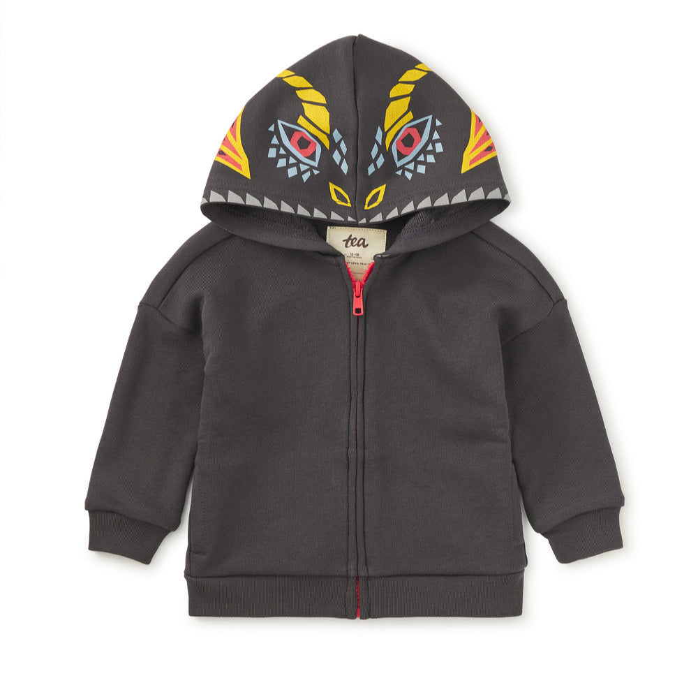 Bring a little roar to everyday adventures with this easy fit hoodie. The bold dragon face on the hood adds playful personality, while soft cotton French terry keeps it extra comfy. Details like on-seam pockets, a full zip, and durable interior neck tape make it practical for school, play, and beyond. An heirloom-quality piece made to be passed down, complete with a handy name tag inside for easy identification at school or play.