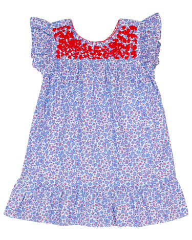The Blue Floral Fiesta Dress radiates joy with its vibrant floral patterns and playful design. Crafted in a breezy blue fabric, this dress features a twirl-worthy skirt and delightful ruffle details, perfect for festive occasions and sunny days. Let your little one celebrate in style with this enchanting and comfortable dress.