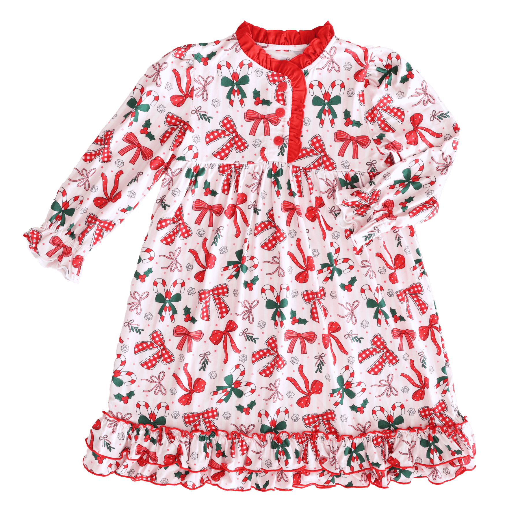 Dress your little one in the magic of Christmas with our Christmas Nightgowns! Designed to make dreams of sugarplums and snowy wonderlands come true, these classically Christmas nightgowns are the perfect addition to your child's holiday bedtime wardrobe. From vibrant nutcrackers to vintage Santas, these nightgowns bring the spirit of the season to life with every twirl. Crafted from the softest, most luxurious fabric, your little one will feel like they are wrapped in a cloud of holiday comfort. With long sleeves and a sweet ruffle at the bottom, these nightgowns add a girly touch to bedtime, and will make every night of the holiday season feel like Christmas eve!