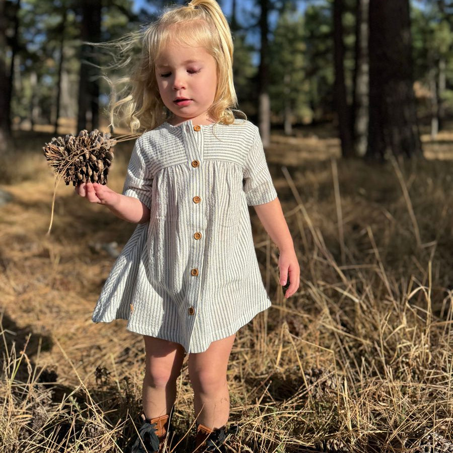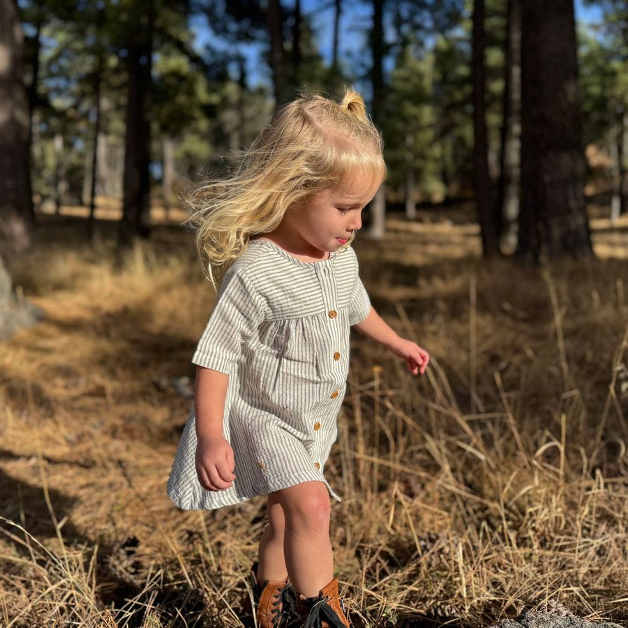 The Georgia Dress in Black Stripe is a timeless essential that effortlessly transitions from playdates to special occasions. Featuring classic black and white striping, this versatile piece pairs beautifully with everything in your child's wardrobe. The thoughtfully designed silhouette offers comfort and freedom of movement, while the quality construction ensures it withstands countless washes and adventures. Perfect for building a capsule wardrobe that grows with your little one, this dress delivers both style and practicality parents love.