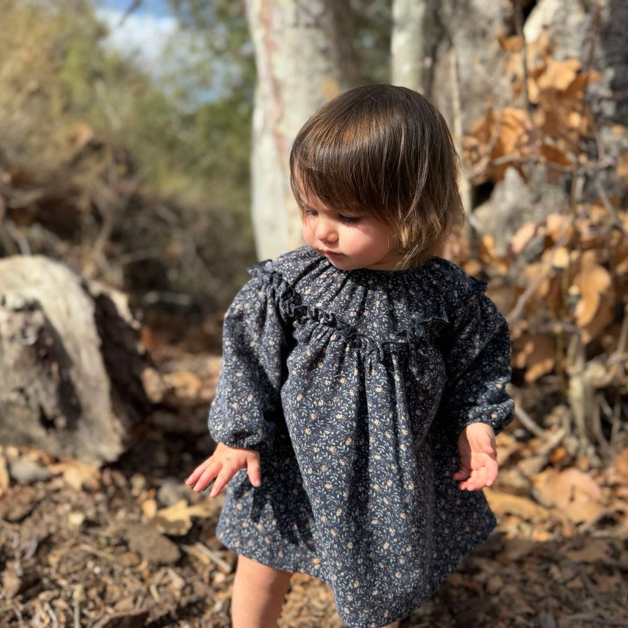 Elevate your little one's wardrobe with this stunning black floral dress that effortlessly blends elegance with playful charm. The delicate floral pattern adds visual interest while the classic black base keeps styling versatile for any occasion—from everyday adventures to special celebrations. Thoughtfully designed for comfort and movement, this dress lets your child express their unique style while you enjoy the ease of a timeless piece that works season after season. Perfect for creating those picture-perfect moments.