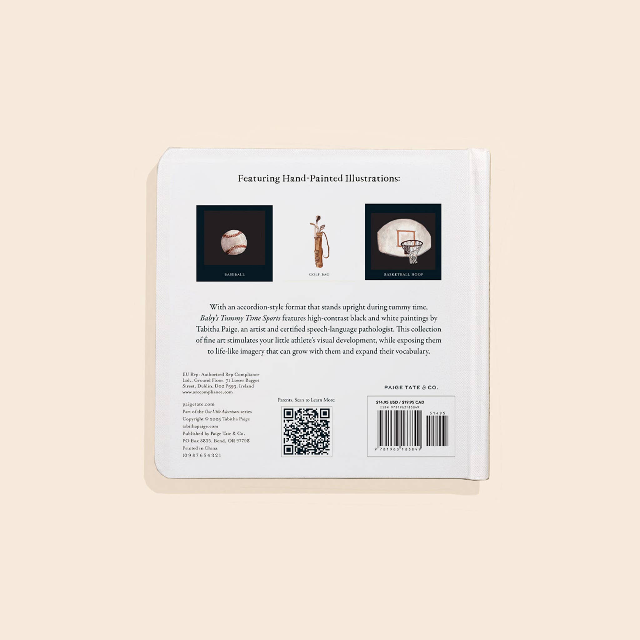A standout for baby sections, this high-contrast accordion-style board book is designed to aid early visual development while introducing infants to the world of sports. Created by bestselling author and speech pathologist Tabitha Paige, it features bold black-and-white illustrations of classic sports gear that captivate newborn eyes. • High-contrast art supports early vision development • Accordion format stands upright—ideal for tummy time displays • Features realistic sports illustrations to grow with baby • Designed by a speech pathologist to encourage vocabulary building • Great baby shower or new parent gift with educational value