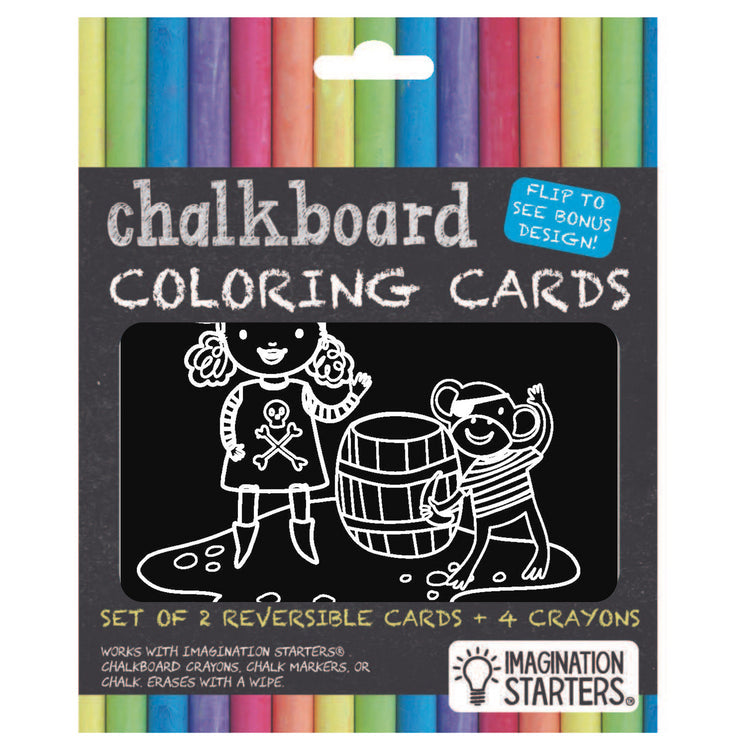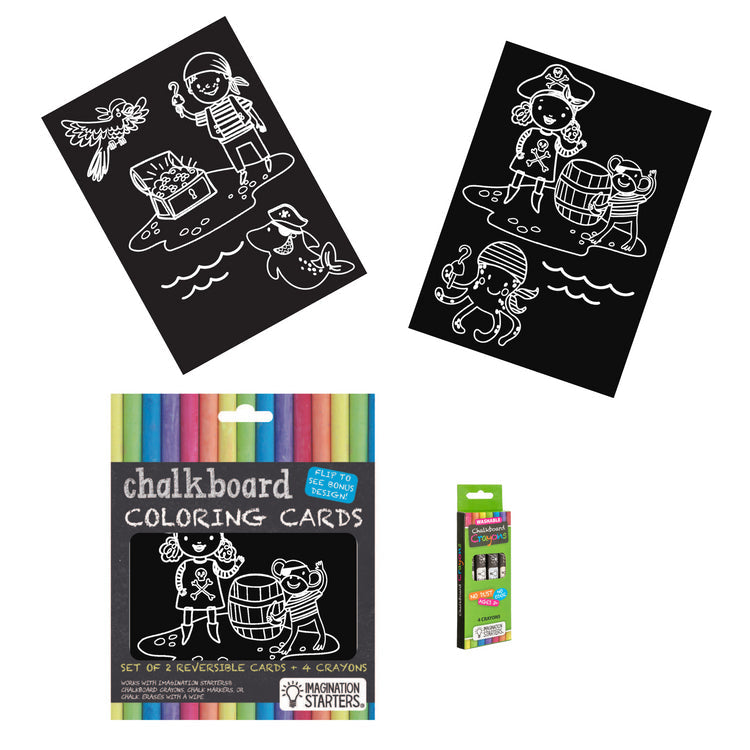 The first card features an adorable pirate monkey, barrel and cute pirate girl with an octopus friends. The second card features a treasure chest, pirate parrot and cute pirate boy. Each card is blank on the back for ultimate creativity.