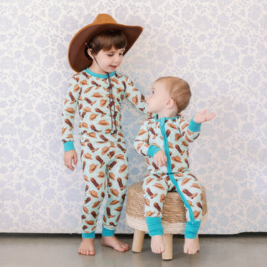 Saddle up for bedtime adventures with our cowboy themed bamboo pajamas, just in time for rodeo season!