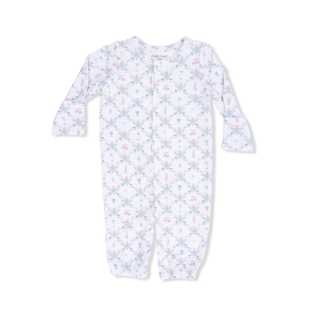 Transition seamlessly from hospital to home in our Convertible Gown, designed with nursing mothers in mind. The elegant pink golf trellis pattern brings timeless style to those precious early days, while discreet side snaps allow easy access for feeding and skin-to-skin bonding. Crafted from soft, breathable fabric, this versatile piece works beautifully as a labor gown, postpartum essential, and beyond.