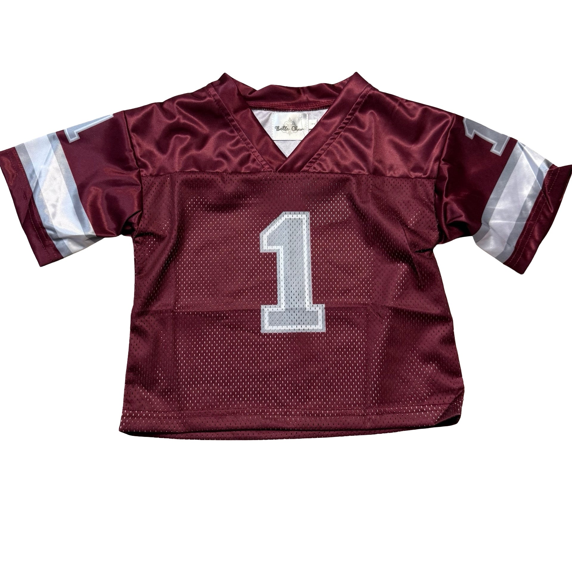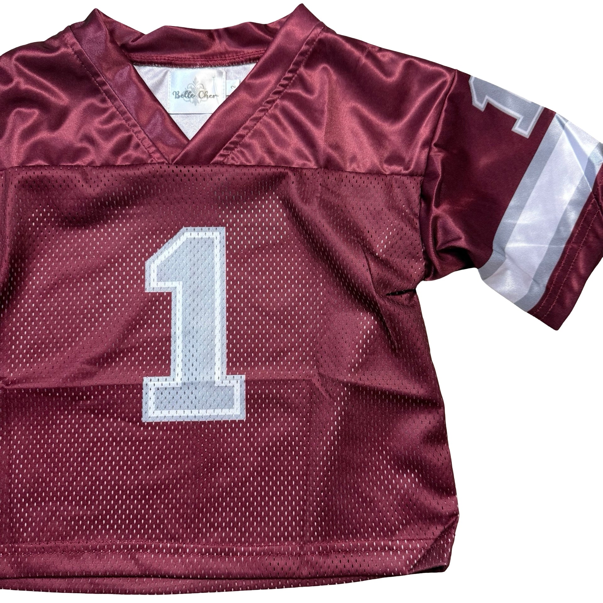 Get your little Aggie ready to support your team this football season with this adorable maroon aggie jersey!